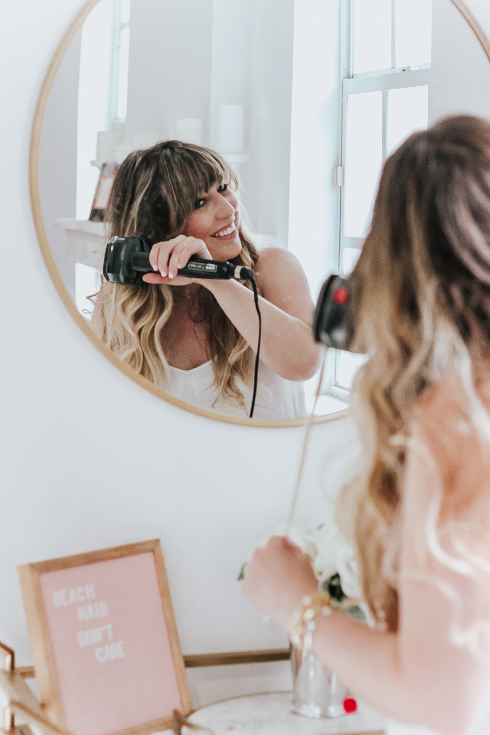 You know the beach wave is kiiiind of my signature hair look. I’m all about a good wave. I can’t even remember why we ever straightened our hair in high school TBH. I just think everyone looks better in a wave! Whenever a new product that boasts about being an easy way to get the beachy, casual look… I’ve got to try it. My friends at Conair reached out about the new InfinitiPRO by Conair’s Curl Secret® 2.0, the new update to the super popular Curl Secret last week and I was psyched to swap it into my haircare routine and give my boring old curling iron a break.